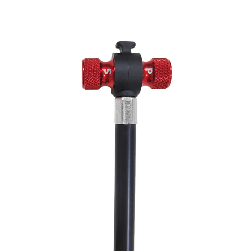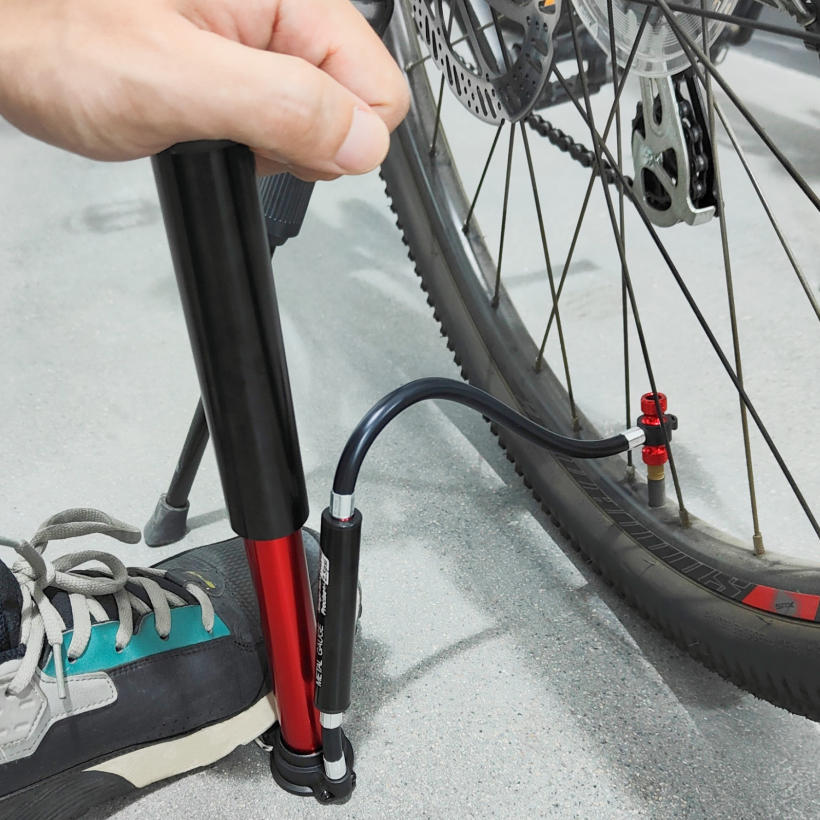 Bicycle portable pumpWith pressure gaugeMaterial: Aluminum alloyColor: BlackAir pressure: 220PSIApplicable: Schrader /Presta ValveSize: 58*37*180mmWeight: 170g