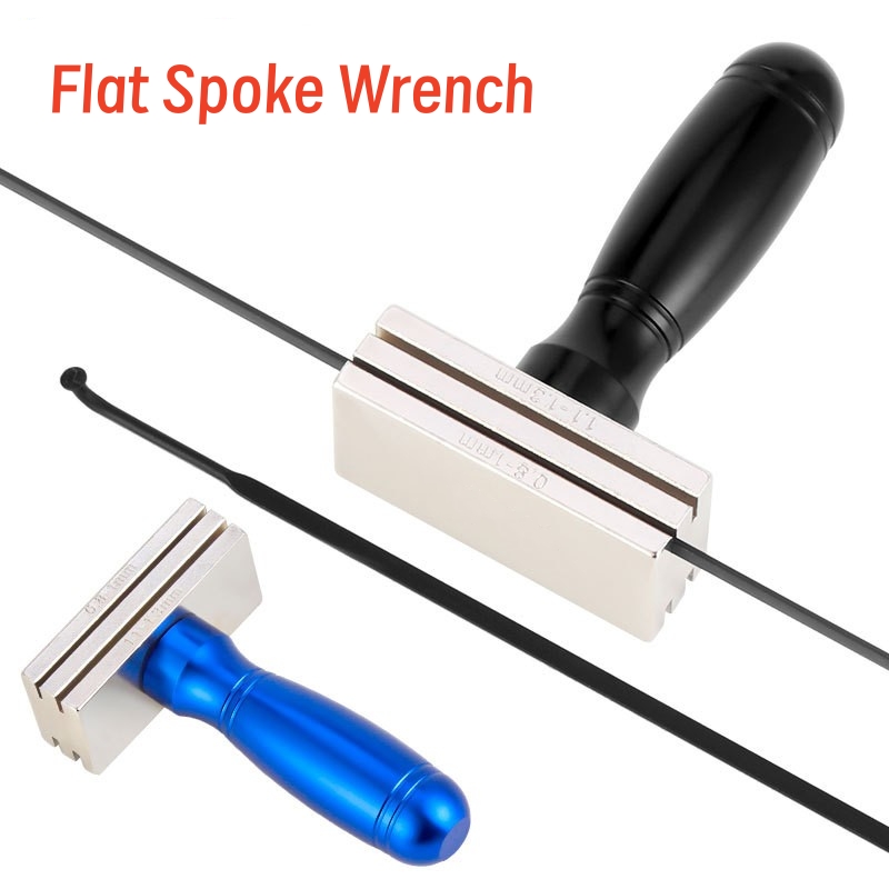 Flat Spoke WrenchMaterial: Aluminum alloy+SteelColor: Black handleApplication: flat spoke with thickness of 0.8-1mm, 1.1-1.3mm, 1.4-1.6mm, 1.7-1.9mmSize: 84*50*25mmWeight: 174g
