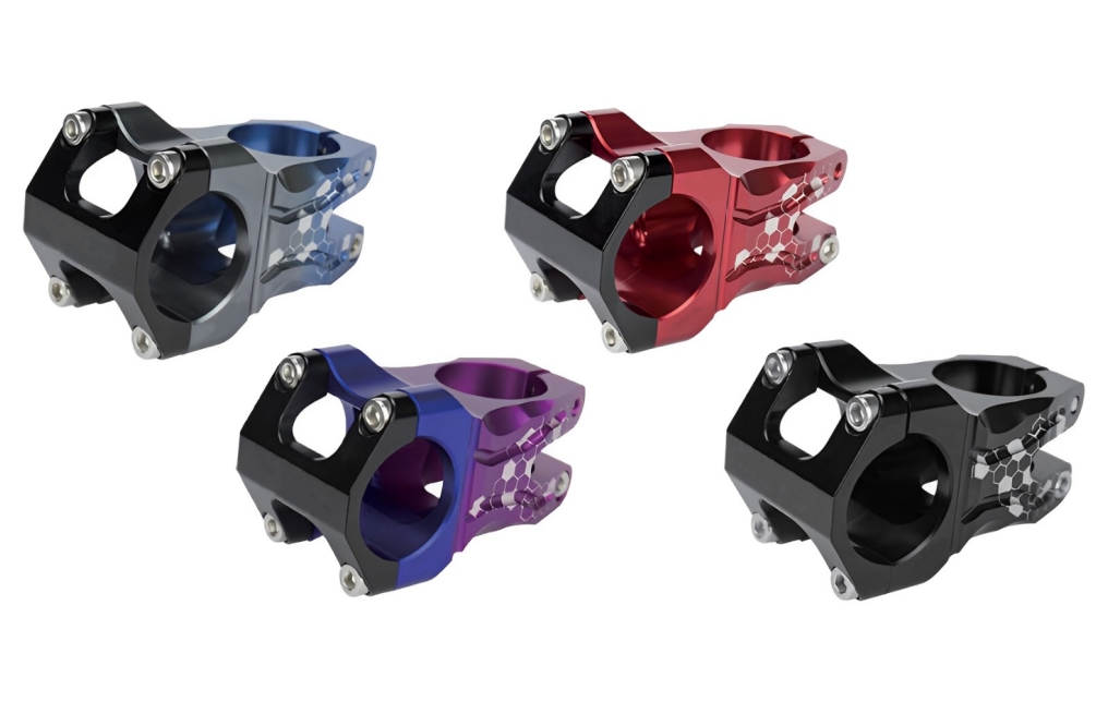 Materlal: Aluminum alloyProcess: CNC machiningColor: BlackBarbore: 31.8mmSteerer: 28.6mmExt: 30mmRise: 0°Height: 35mmFinish: Sandblasted anodized color