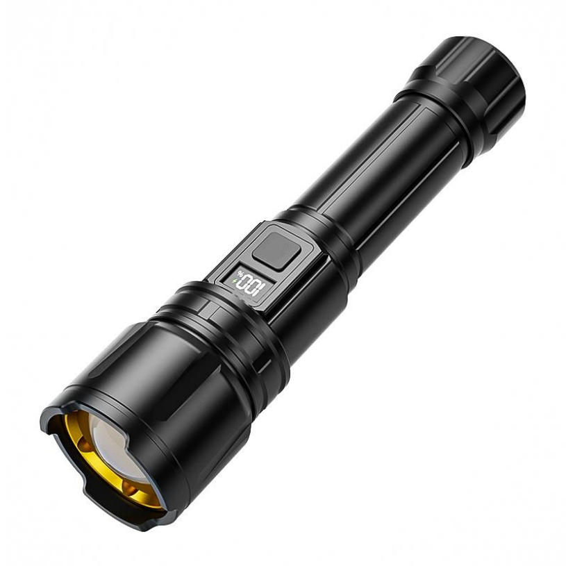 FlashlightZoomableLED: White laser wick LEDBrightness: 700 lumensMaterial: Aluminum alloyColor: BlackBattery: 3000mAh li-ion batteryModes: 4 lighting modesBattery life: 4 h (strong light)Charging port: TYPE-CSize: 167*43*31mmWeight: 192g